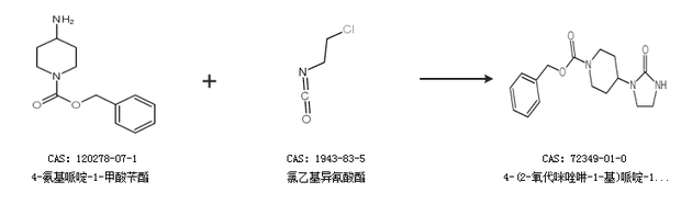2.通过4-氨基哌啶-1-甲酸苄酯和氯乙基异氰酸酯合成4-(2-氧代咪唑啉-1-基)哌啶-1-羧酸苄酯