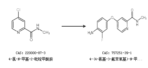 中文别名 4-(4-氨基-3-氟苯氧基)吡啶-2-羧酸甲胺;4-(4-氨基-3-氟苯氧基)-N-甲基-2-吡啶甲酰胺;