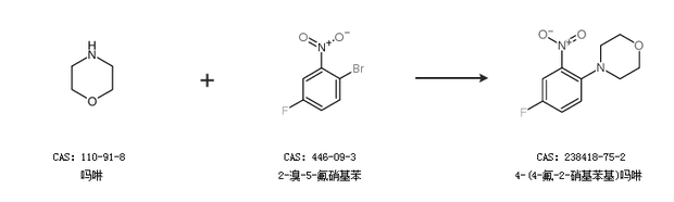 1.通过吗啉和2-溴-5-氟硝基苯合成4-(4-氟-2-硝基苯基)吗啉