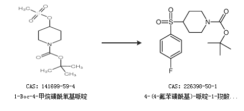 1.通过1-Boc-4-甲烷磺酰氧基哌啶合成4-(4-氟苯磺酰基)-哌啶-1-羧酸叔丁酯