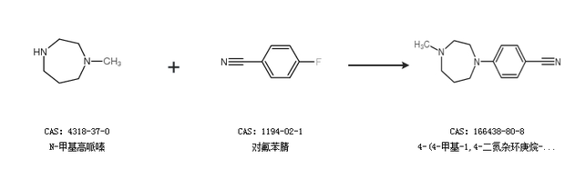 1.通过N-甲基高哌嗪和对氟苯腈合成4-(4-甲基-1,4-二氮杂环庚烷-1-基)苯甲腈