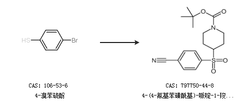 2.通过4-溴苯硫酚合成4-(4-氰基苯磺酰基)-哌啶-1-羧酸叔丁酯