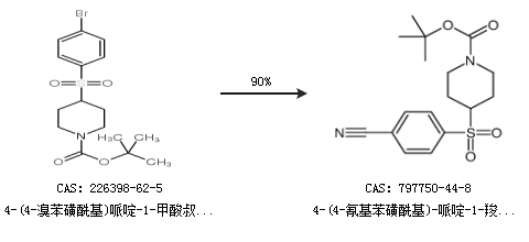 1.通过4-(4-溴苯磺酰基)哌啶-1-甲酸叔丁酯合成4-(4-氰基苯磺酰基)-哌啶-1-羧酸叔丁酯,收率约90%;