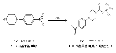 2.通过1-(4-硝基苯基)哌嗪合成4-(4-硝基苯基)哌嗪-1-羧酸叔丁酯,收率约79%;