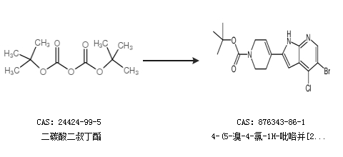 2.通过二碳酸二叔丁酯合成4-(5-溴-4-氯-1H-吡咯并[2,3-B]吡啶-2-基)-3,6-二氢-1(2H)-吡啶羧酸 1,1-二甲基乙酯