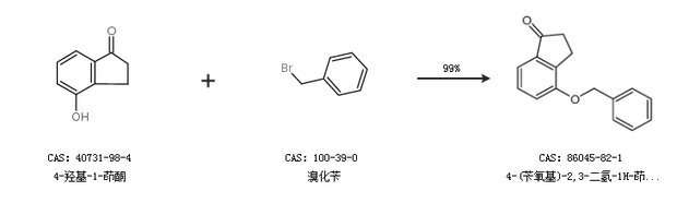 1.通过4-羟基-1-茚酮和溴化苄合成4-(苄氧基)-2,3-二氢-1H-茚-1-酮,收率约99%;