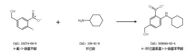 1.通过4-氟-3-硝基苄醇和环己胺合成4-(环己基氨基)-3-硝基苯甲醇