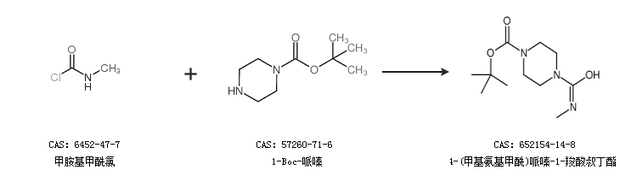 1.通过甲胺和4-氯羰基-哌嗪-1-羧酸叔丁酯合成4-(甲基氨基甲酰)哌嗪-1-羧酸叔丁酯,收率约70%;