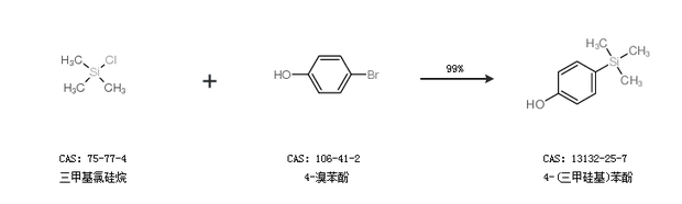 1.通过三甲基氯硅烷和4-溴苯酚合成4-(三甲硅基)苯酚,收率约99%;