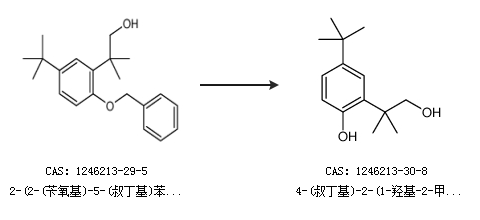 1.通过2-(2-(苄氧基)-5-(叔丁基)苯基)-2-甲基丙烷-1-醇合成4-(叔丁基)-2-(1-羟基-2-甲基丙烷-2-基)苯酚