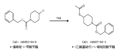 1.通过4-溴哌啶-1-甲酸苄酯合成4-(乙酰基硫代)-1-哌啶羧酸苄酯,收率约74%;