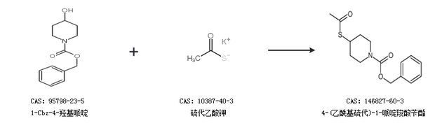 2.通过1-Cbz-4-羟基哌啶和硫代乙酸钾合成4-(乙酰基硫代)-1-哌啶羧酸苄酯