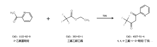 1.通过2-乙酰基吡啶和三氟乙酸乙酯合成4,4,4-三氟-1-(2-吡啶)丁烷-1,3-二酮,收率约79%;