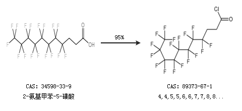 1.通过2-氨基甲苯-5-磺酸合成4,4,5,5,6,6,7,7,8,8,9,9,10,10,11,11,11-十七氟十一酰氯,收率约95%;