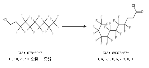 英文别名 4,4,5,5,6,6,7,7,8,8,9,9,10,10,11,11,11-heptadecafluoroundecanoylchloride;chlorure d''acide 3-perfluorooctyl propionique;2,2,3,3-tetrahydroperfluoroundecanoyl chloride;le chlorure de 1H,1H,2H,2H-perfluoroun-decanoyle;2H,2H,3H,3H-perfluoro undecanoyl chloride;2H,2H,3H,3H-perfluoroundecanoic acid chloride;