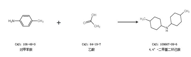 2.通过对甲苯胺和乙酸合成4,4’-二甲基二环己胺