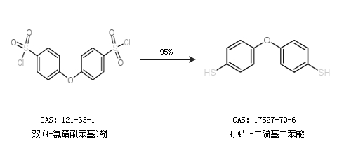 1.通过双(4-氯磺酰苯基)醚合成4,4’-二巯基二苯醚,收率约95%;