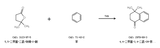 1.通过5,5-二甲基-二氢-呋喃-2-酮和苯合成4,4-二甲基-3,4-二氢-2H-萘-1-酮,收率约74%;