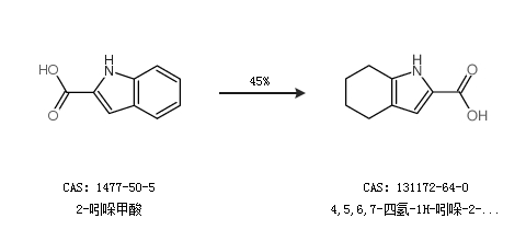 1.通过2-吲哚甲酸合成4,5,6,7-四氢-1H-吲哚-2-羧酸,收率约45%;