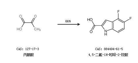 1.通过丙酮酸合成4,5-二氟-1H-吲哚-2-羧酸,收率约66%;