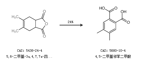 1.通过5,6-二甲基-3a,4,7,7a-四氢-2-苯并呋喃-1,3-二酮合成4,5-二甲基邻苯二甲酸,收率约24%;