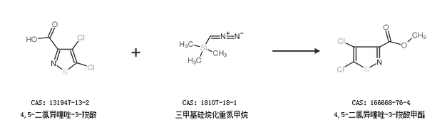1.通过4,5-二氯异噻唑-3-羧酸和三甲基硅烷化重氮甲烷合成4,5-二氯异噻唑-3-羧酸甲酯