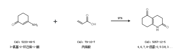 2.通过3-氨基-2-环己烯-1-酮和丙烯酸合成4,6,7,8-四氢-2,5(1H,3H)-喹啉二酮,收率约97%;