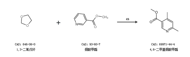 1.通过1,3-二氧戊环和烟酸甲酯合成4,6-二甲基烟酸甲酯,收率约4%;