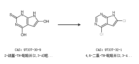 2.通过2-疏基-7H-吡咯并[2,3-d]嘧啶-4,6-二醇合成4,6-二氯-7H-吡咯并[2,3-d]嘧啶
