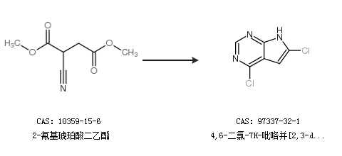 1.通过2-氰基琥珀酸二乙酯合成4,6-二氯-7H-吡咯并[2,3-d]嘧啶