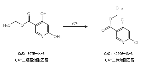 1.通过4,6-二羟基烟酸乙酯合成4,6-二氯烟酸乙酯,收率约96%;