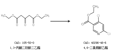 2.通过1,3-丙酮二羧酸二乙酯合成4,6-二氯烟酸乙酯
