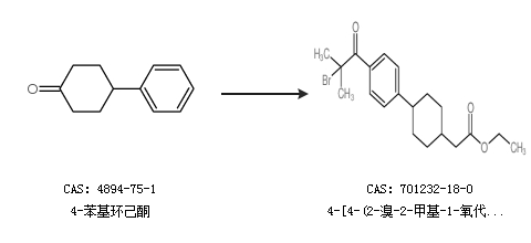 1.通过4-苯基环己酮合成4-[4-(2-溴-2-甲基-1-氧代丙基)苯基]-环己烷乙酸乙酯