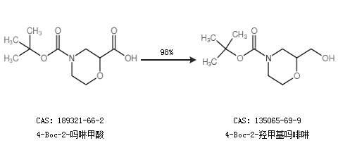 2.通过4-Boc-2-吗啉甲酸合成4-Boc-2-羟甲基吗啡啉,收率约98%;