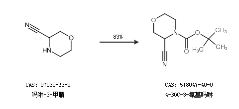 2.通过吗啉-3-甲腈合成4-BOC-3-氰基吗啉,收率约83%;