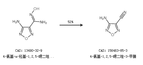 2.通过4-氨基-n-羟基-1,2,5-噁二唑-3-羧酰胺合成4-氨基-1,2,5-噁二唑-3-甲腈,收率约52%;