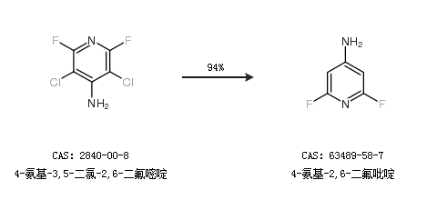 2.通过4-氨基-3,5-二氯-2,6-二氟嘧啶合成4-氨基-2,6-二氟吡啶,收率约94%;