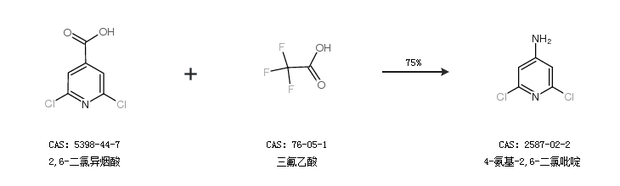 2.通过2,6-二氯异烟酸和三氟乙酸合成4-氨基-2,6-二氯吡啶,收率约75%;