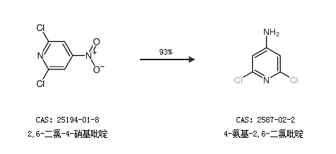 1.通过2,6-二氯-4-硝基吡啶合成4-氨基-2,6-二氯吡啶,收率约93%;