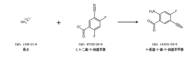 2.通过氨水和2,4-二氟-5-硝基苯腈合成4-氨基-2-氟-5-硝基苯甲腈