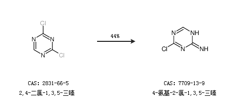 1.通过2,4-二氯-1,3,5-三嗪合成4-氨基-2-氯-1,3,5-三嗪,收率约44%;