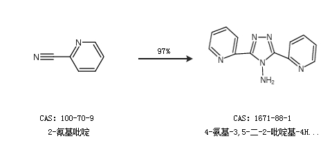 1.通过2-氰基吡啶合成4-氨基-3,5-二-2-吡啶基-4H-1,2,4-三唑,收率约97%;