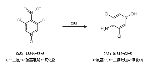 2.通过3,5-二氯-4-硝基吡啶N-氧化物合成4-氨基-3,5-二氟吡啶n-氧化物,收率约29%;