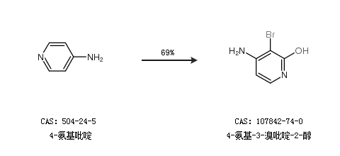 1.通过4-氨基吡啶合成4-氨基-3-溴吡啶-2-醇,收率约69%;