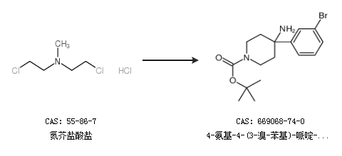 2.通过氮芥盐酸盐合成4-氨基-4-(3-溴-苯基)-哌啶-1-羧酸叔丁酯