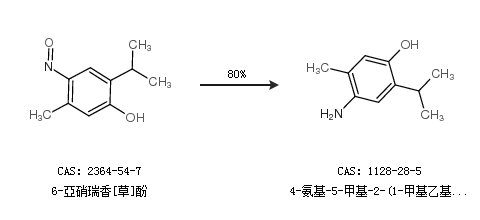 1.通过6-亞硝瑞香[草]酚合成4-氨基-5-甲基-2-(1-甲基乙基)苯酚,收率约80%;