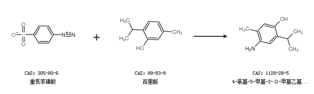 2.通过重氮苯磺酸和百里酚合成4-氨基-5-甲基-2-(1-甲基乙基)苯酚
