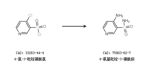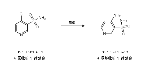 1.通过4-氯吡啶-3-磺酰胺合成4-氨基吡啶-3-磺酰胺,收率约50%;