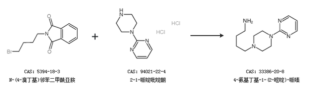 1.通过N-(4-溴丁基)邻苯二甲酰亚胺和2-1-哌啶吡啶酮合成4-氨基丁基-1-(2-嘧啶)-哌嗪