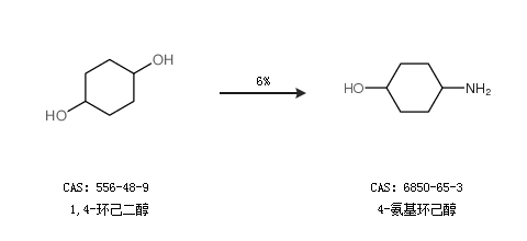 1.通过1,4-环己二醇合成4-氨基环己醇,收率约6%;